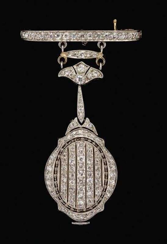 Lady's platinum and diamond lapel watch, J.E. Caldwell & Co.
