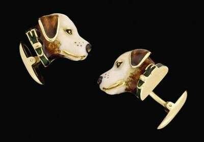 18 karat yellow gold and enamel "Jack Russell" cufflinks