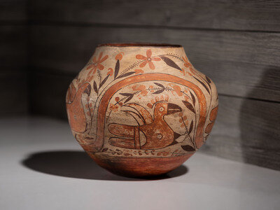 Acoma / Laguna Polychrome Parrot Pottery Jar