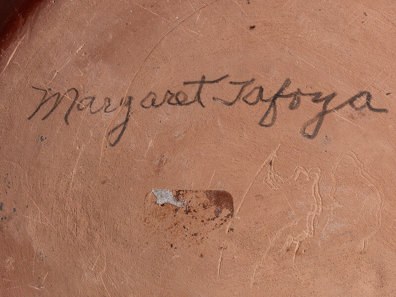globular jar and carved with Avanyu around shoulder; signed on base