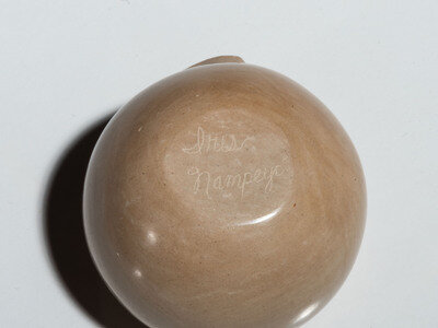 a pair of buff jars with corn design by Iris Nampeyo (Hopi, 1944-2018)