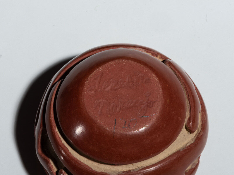 a redware jar with Avanyu; signed on base by Teresita Naranjo (Santa Clara, 1919-1999)