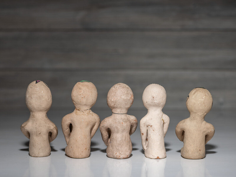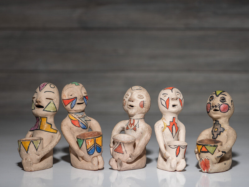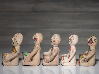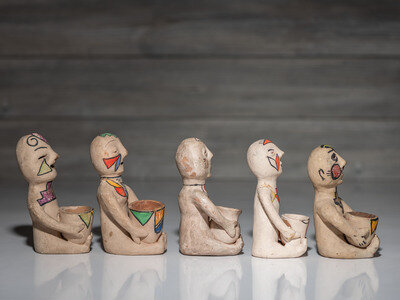 lot of 5, brightly painted seated figures