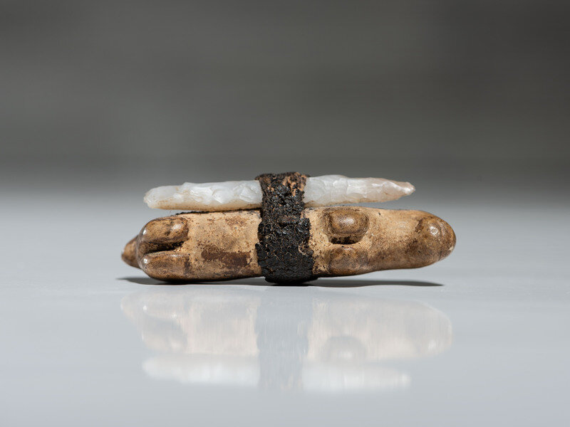 carved of a hard stone and wrapped with sinew coated in pitch, strapping a point to the side