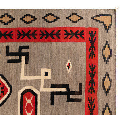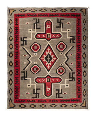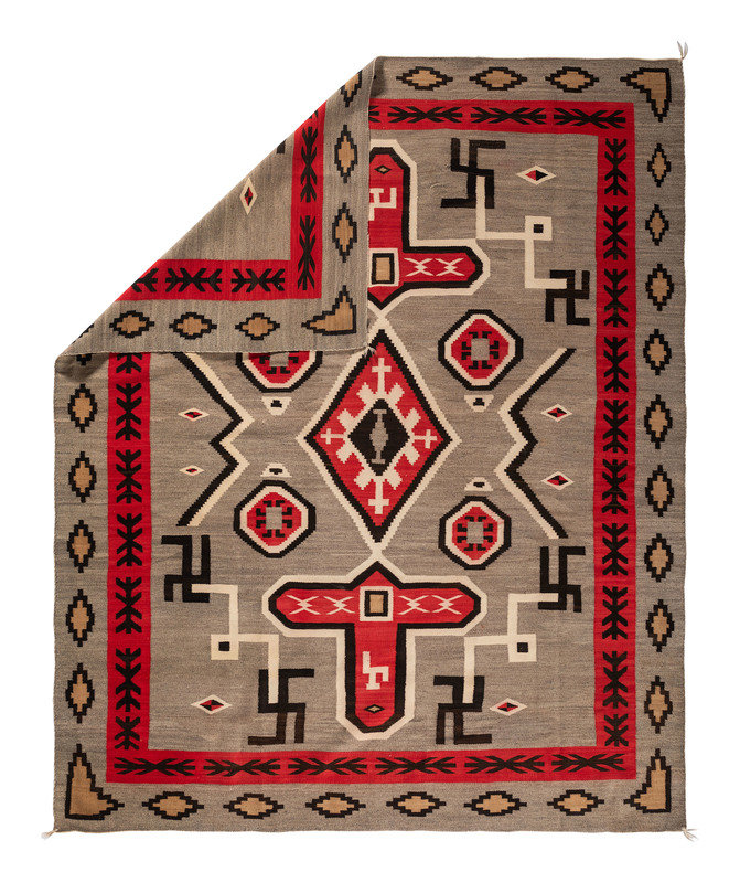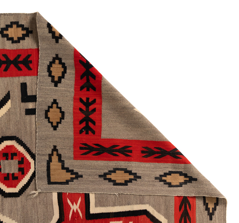 Plate XXXI; handspun wool woven in colors of gray, red, cream, and dark brown