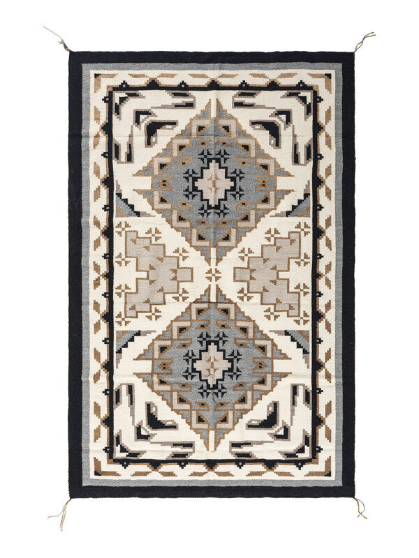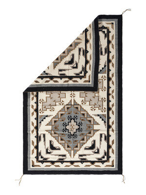 fine handspun wool having a thin weave, and designed with double-stepped diamonds surrounded by a border of terraced elements