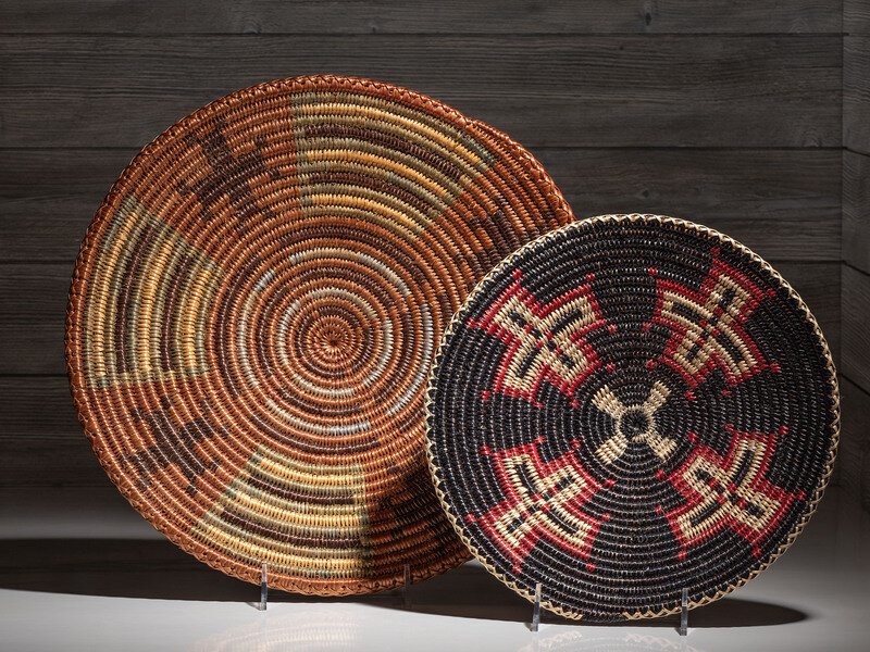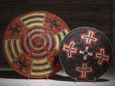 a black, red, and white basket by Peggy Black diameter 13-1/2 inches