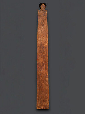 carved with six figures and painted with colors of red, black, and green