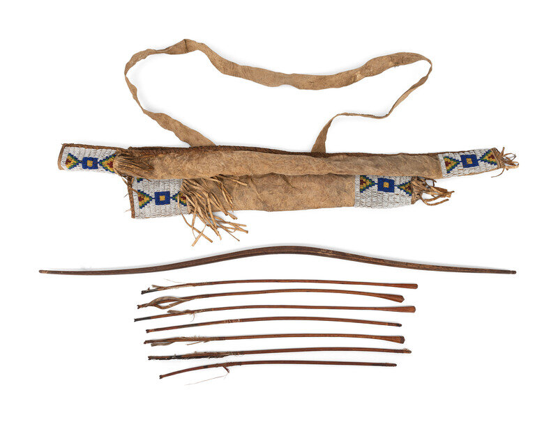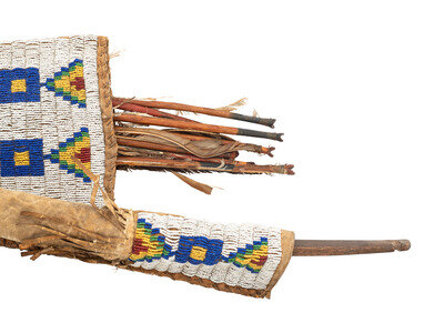 Sioux Beaded Hide Bowcase and Quiver, with Bow and Arrows
