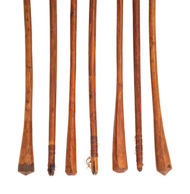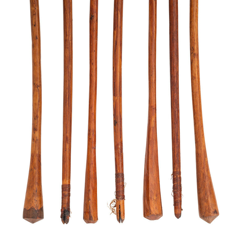 overall length of bowcase 41 inches; length of bow 44 inches; average length of arrow 25 inches