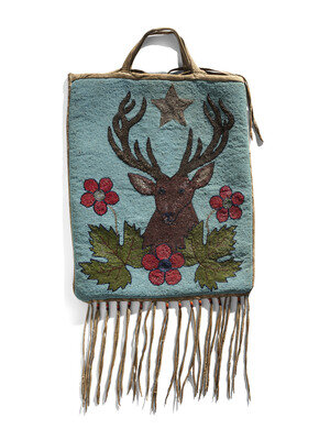Plateau Beaded Hide Storage Bag, with Buck