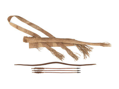 Apache Buffalo Hide Bowcase and Quiver, with Sinew-Backed Recurve Bow and Three Arrows