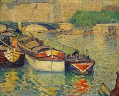 ABEL GEORGE WARSHAWSKY (AMERICAN 1883-1962) BOATS ON THE SEINE