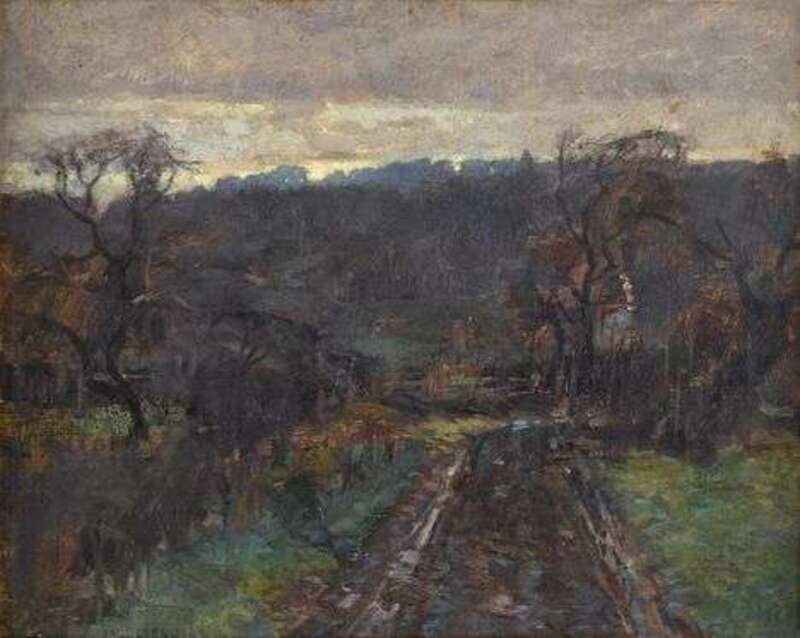 PAUL CORNOYER (AMERICAN 1864-1923) A ROAD AT DUSK
