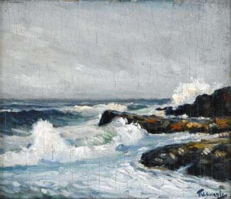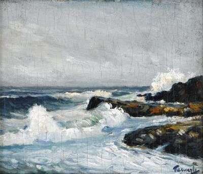 FREDERICK JUDD WAUGH (AMERICAN 1861-1940) BREAKERS ON THE SHORE