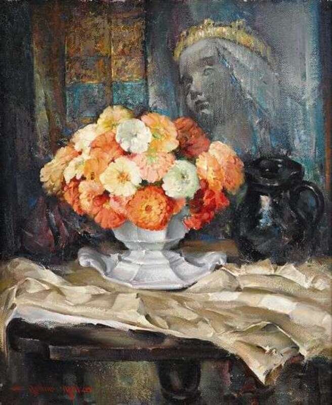 ARTHUR MELTZER (AMERICAN 1893-1989) STILL LIFE OF FLOWERS ON A TABLE TOP
