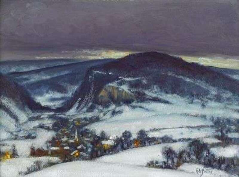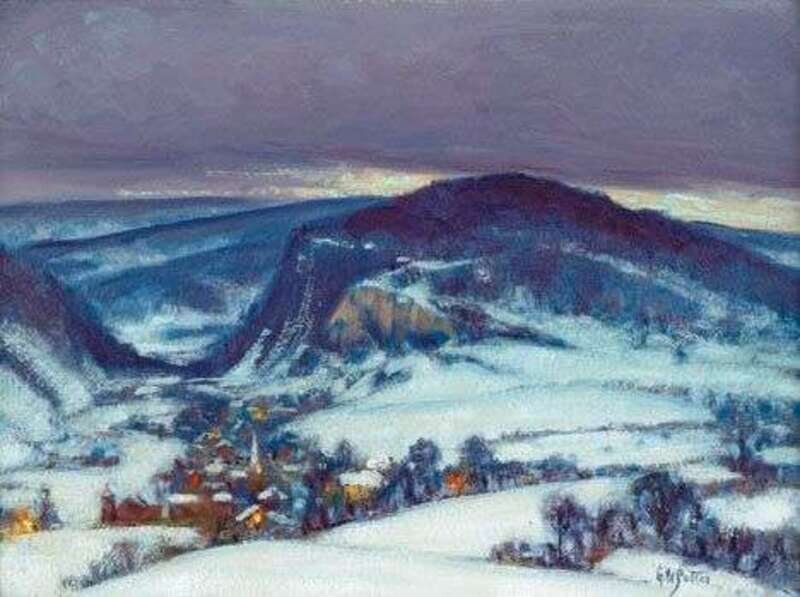 GEORGE SOTTER (AMERICAN 1879-1953) "A WINTER EVENING IN THE VALLEY"