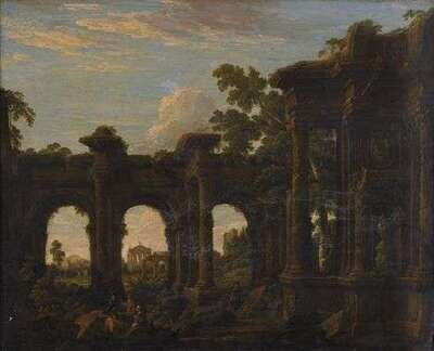 FOLLOWER OF ANDREA LOCATELLI (ITALIAN 1695-1741) CAPRICCIO WITH FIGURES