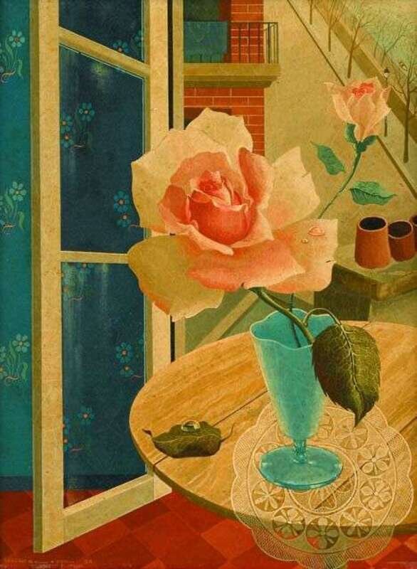 RATISLAW RAKOFF (RUSSIAN B. 1904) ROSES BY AN OPEN WINDOW
