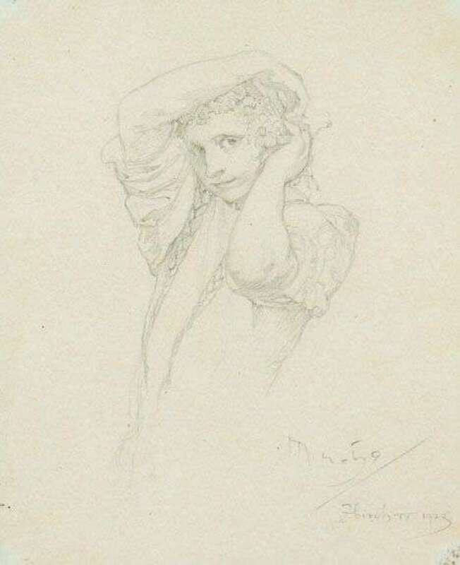 Signed, inscribed and dated 'Mucha/Zbiroh TY 1923' bottom right, pencil on paper