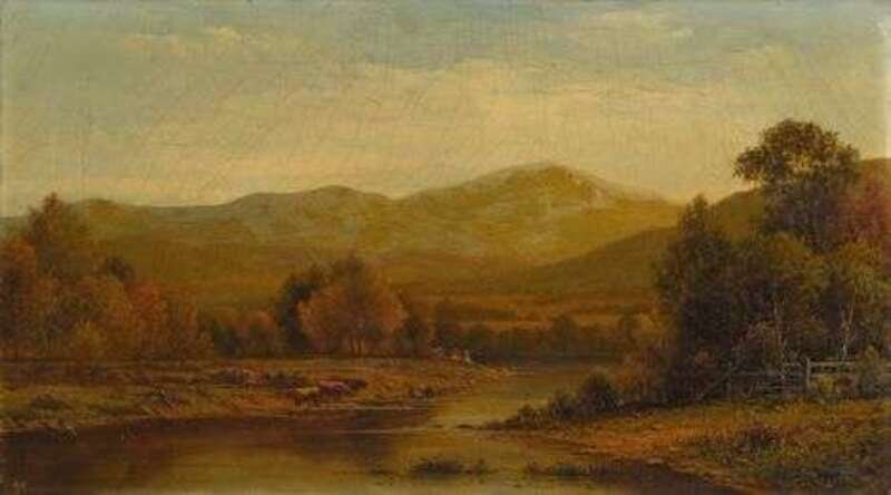 CHARLES WILSON KNAPP (AMERICAN 1823-1900) FIGURES AND CATTLE IN A RIVER LANDSCAPE