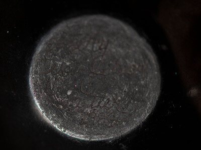deeply carved with stepped motif, signed on base