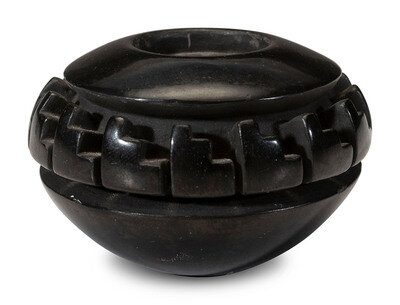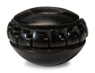 Carved Miniature Blackware Pottery Jar