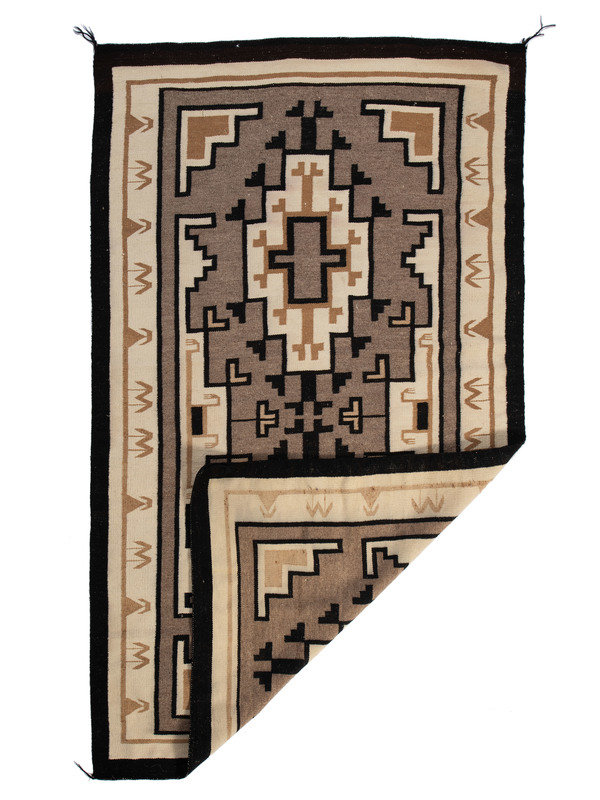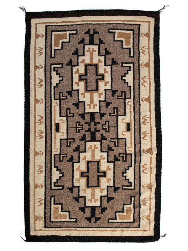 handspun wool woven in natural colors and designed with a double diamond surrounded by a mountainous-inspired border