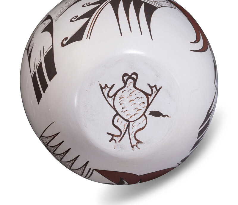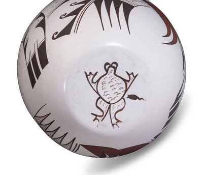 lot of 2, both Sikyatki designs and marked with frog and tadpole hallmark on base, includes: