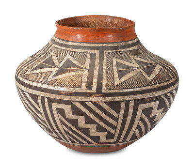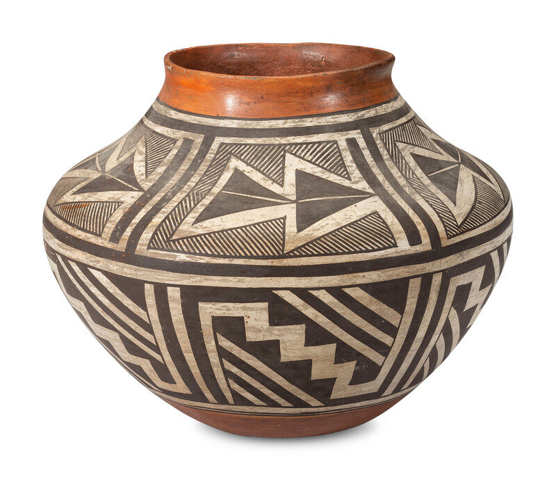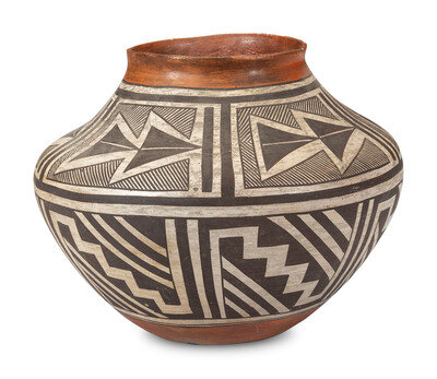 with fine lines and stepped elements reminiscent of Anasazi designs