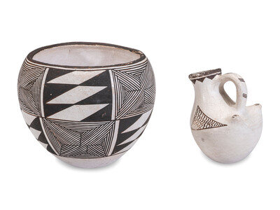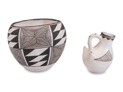 a jar reminiscent of a Mimbres bird jar; signed on base