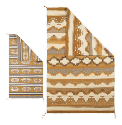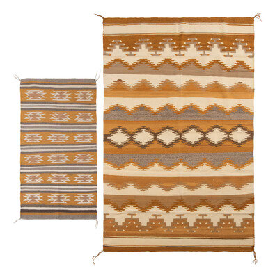 lot of 2, both woven of handspun wool in natural colors, sizes include: