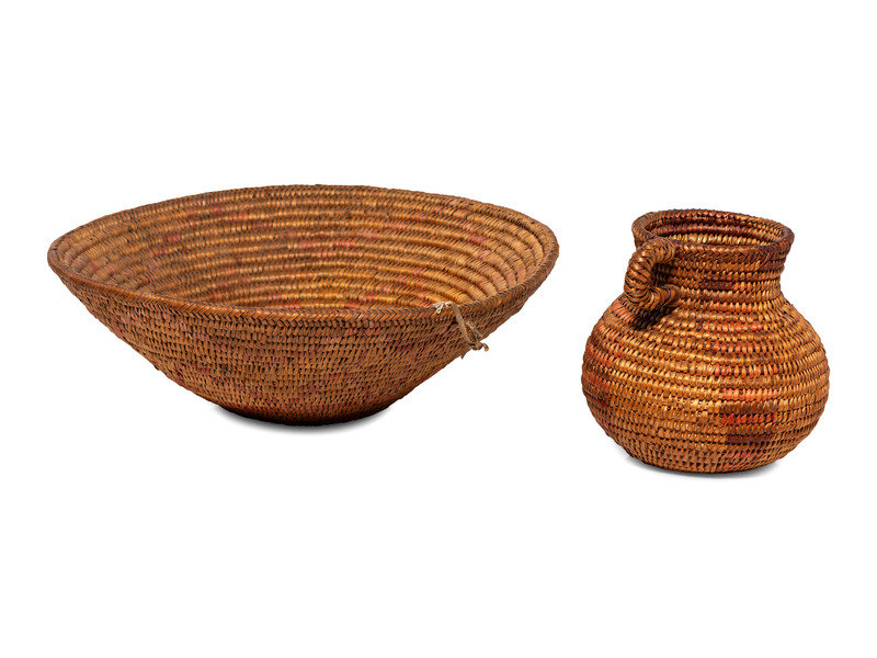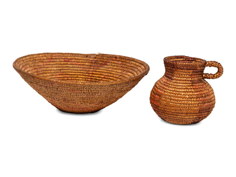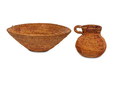 Jicarilla Apache Polychrome Basketry Basin and Pitcher