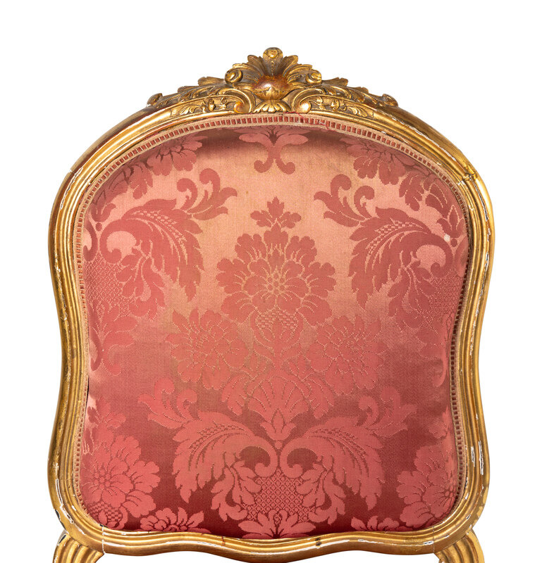 with silk damask upholstery.