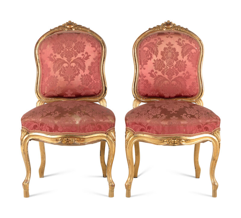 A Pair of Louis XV Style Giltwood Side Chairs