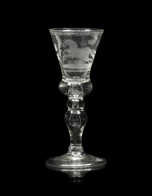 A Rare Hanoverian Engraved Baluster Stem Wine Glass