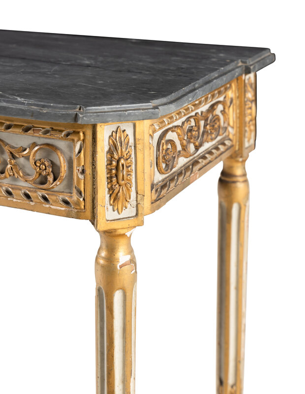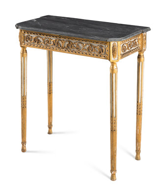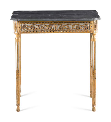 A Louis XVI Style Painted and Parcel Gilt Marble-Top Console Table