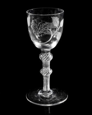 A Hanoverian Engraved Air Twist Wine Glass