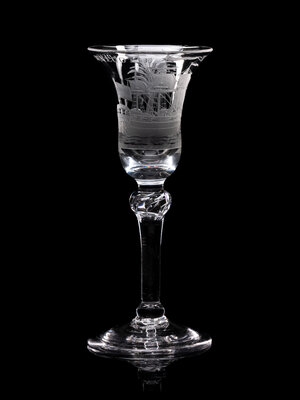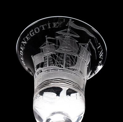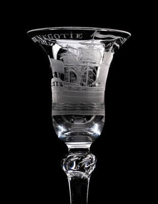A Dutch Engraved Privateer Wine Glass