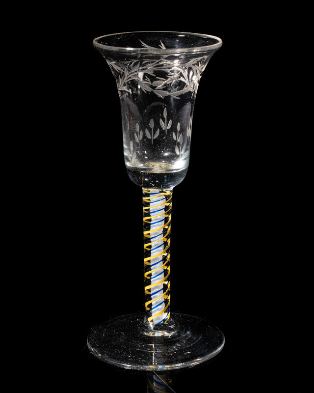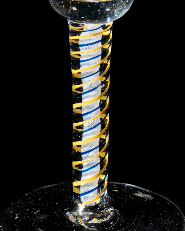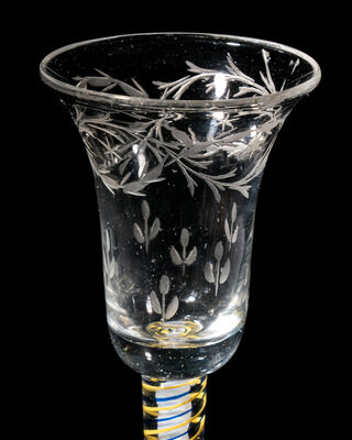 A Rare Canary-Yellow and Blue Color Twist Engraved Wine Glass