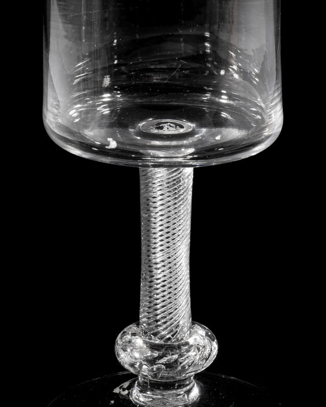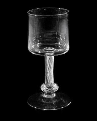 the plain bucket bowl surmounting an air twist stem with a teared knop at base and raised on a conical foot.