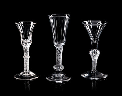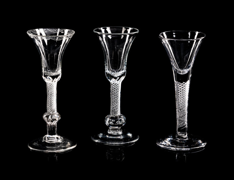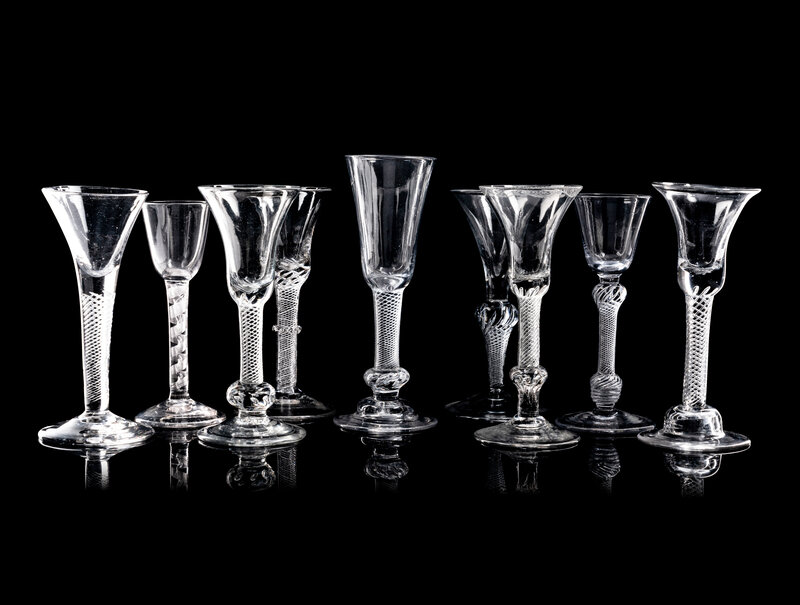 A Collection of Nine English Air Twist Wine and Ale Glasses