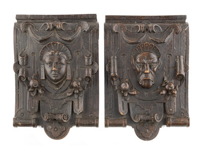 A Pair of English Carved Oak Corbels