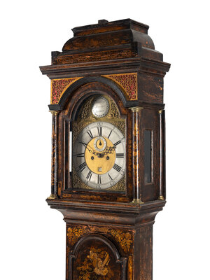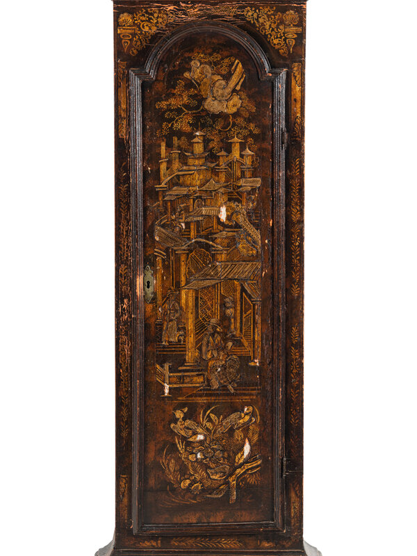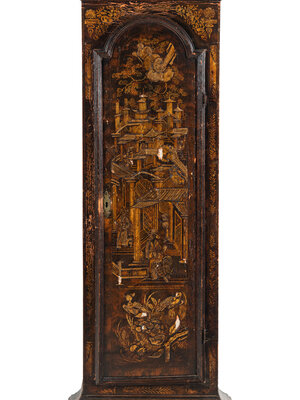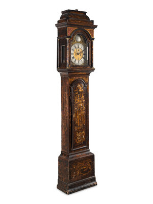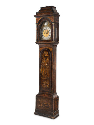 A George I Black and Gilt-Japanned Oak Tall Case Clock