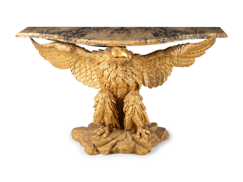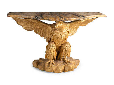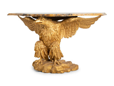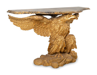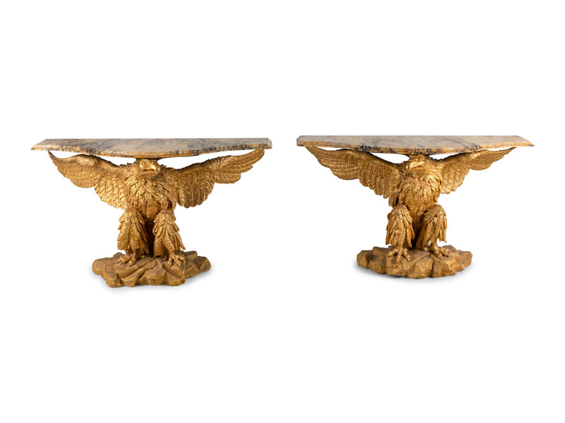 A Pair of George II Giltwood Marble-Top Eagle Pier Tables