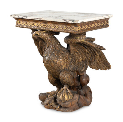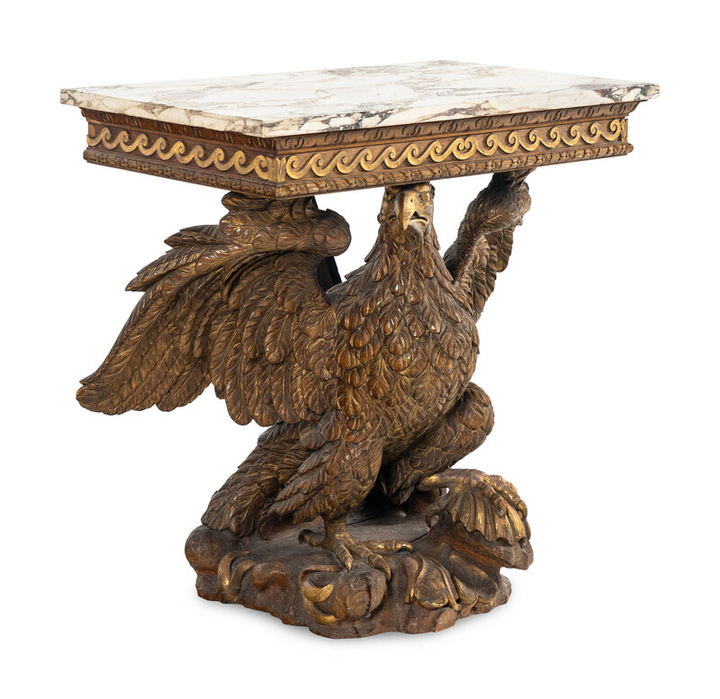 A George II Style Giltwood Marble-Top Eagle Pier Table