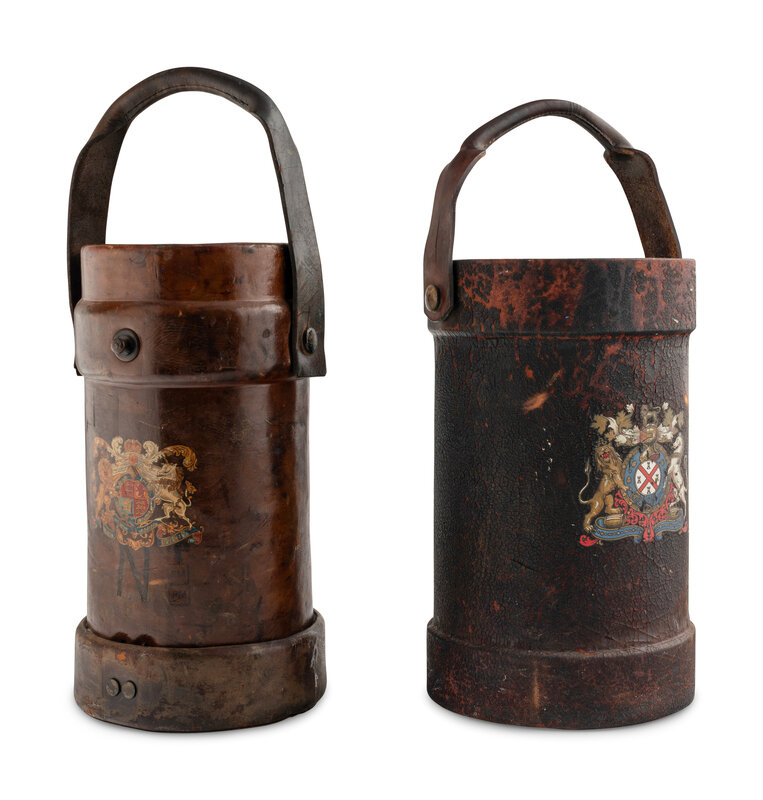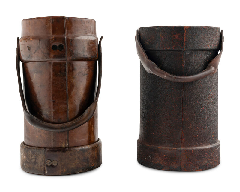 Two English Leather Artillery Buckets