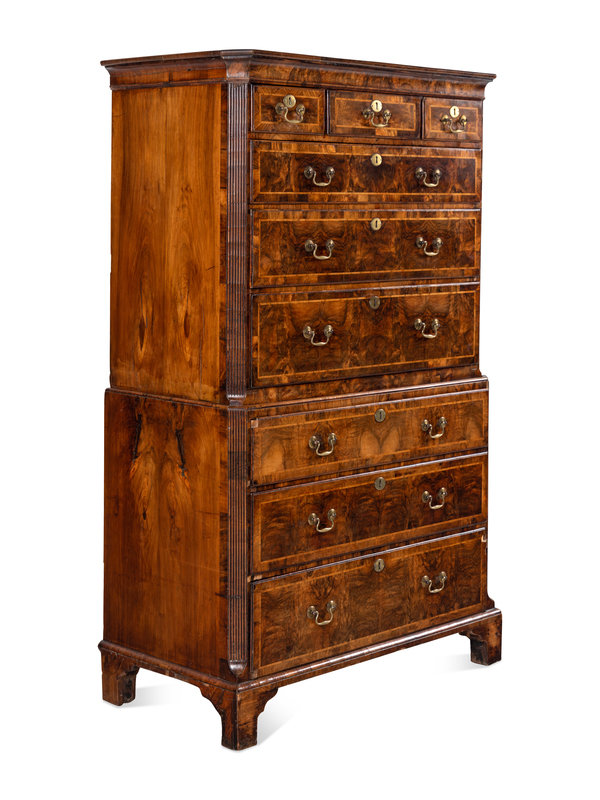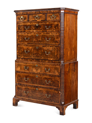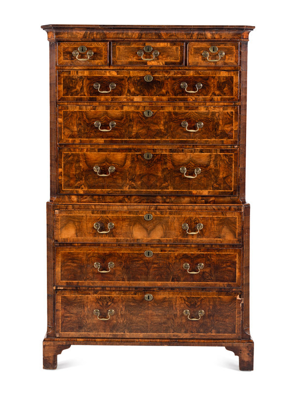 A George III Burl Walnut Chest-on-Chest