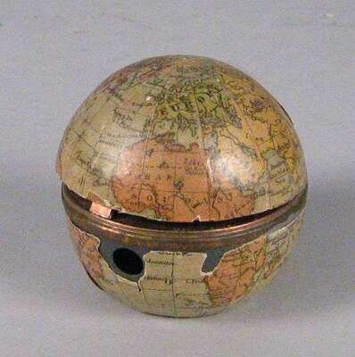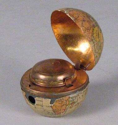 Novelty gilt metal and paper covered 'globe' inkwell 19th/20th century