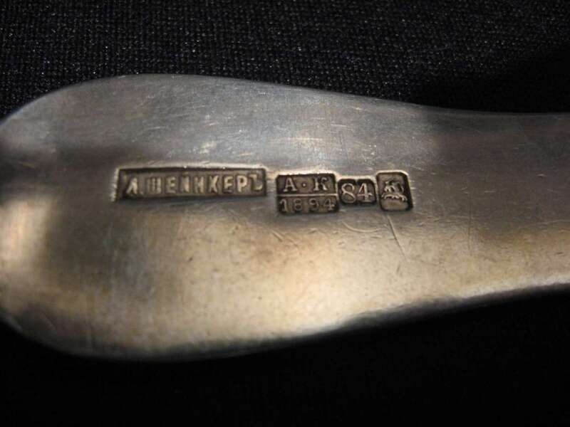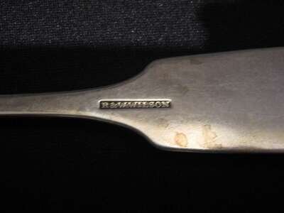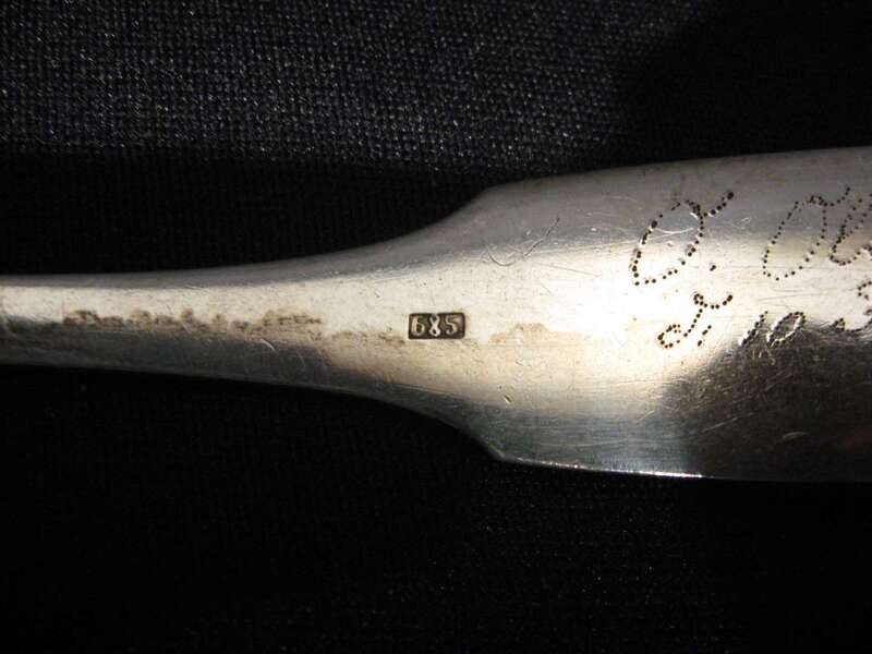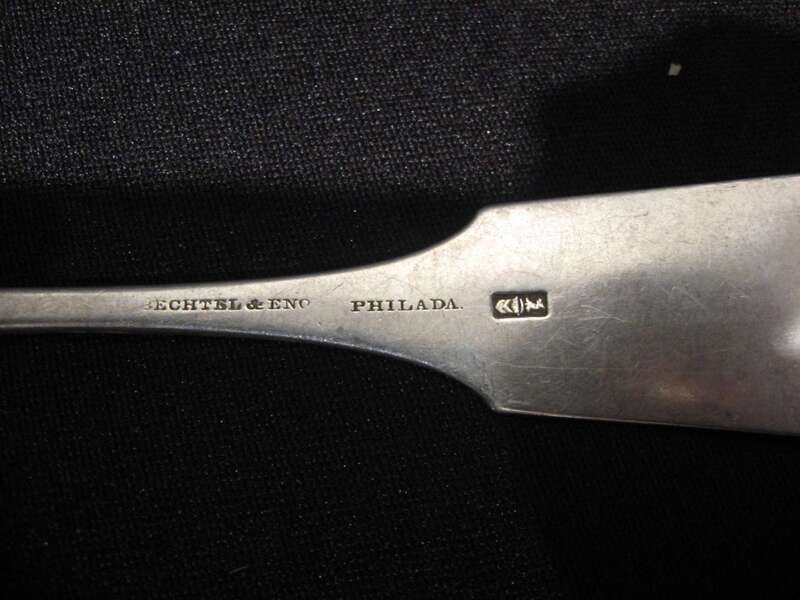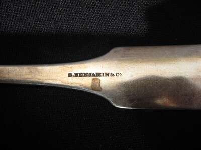Including R & W Wilson, E. Benjamin & Co., George B. Foster, I. Reed & Son, G. Gordon and others, most with fiddle handles, many with monograms; together with a pair of Russian silver tablespoons, dated 1894.